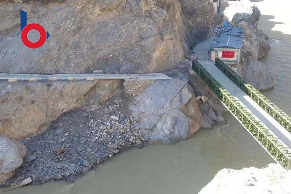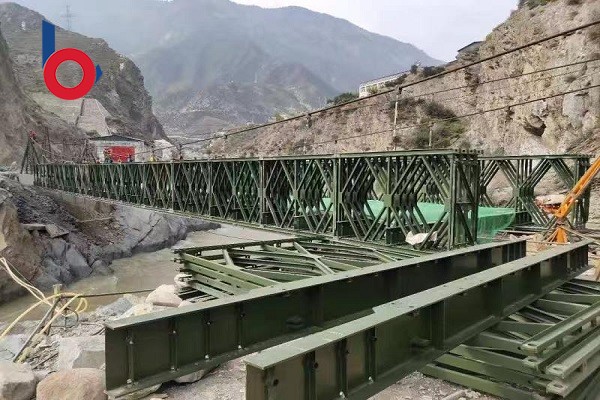 江蘇貝雷鋼橋有限公司生產秉承服務人民,讓客戶滿意的宗旨,為客戶提供優質的產品和專業的服務,在架設過程中,由于四排單層加強型鋼橋難度較大并且架設地點在較為偏僻的山區,所以總體架設難度較大。貝雷鋼橋的技術人員和甘肅人民不怕困難,發揚不怕苦、不怕累的精神,克服在架設過程中的種種困難,圓滿的完成了此次工程。