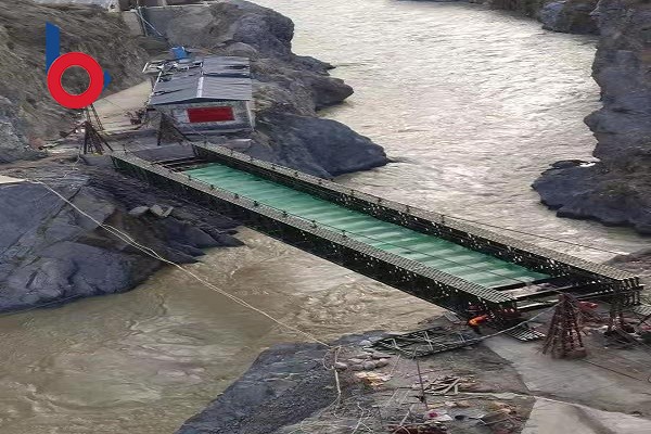江蘇貝雷鋼橋有限公司派專門的技術人員前往甘肅省甘南藏族自治州迭部縣,架設橋型四排單層加強型(QSR)鋼橋,貝雷鋼橋架設的鋼橋使用200型產品,全橋長45.72米,屬于單跨橋,整個橋面凈寬 4.2米,荷載55噸。